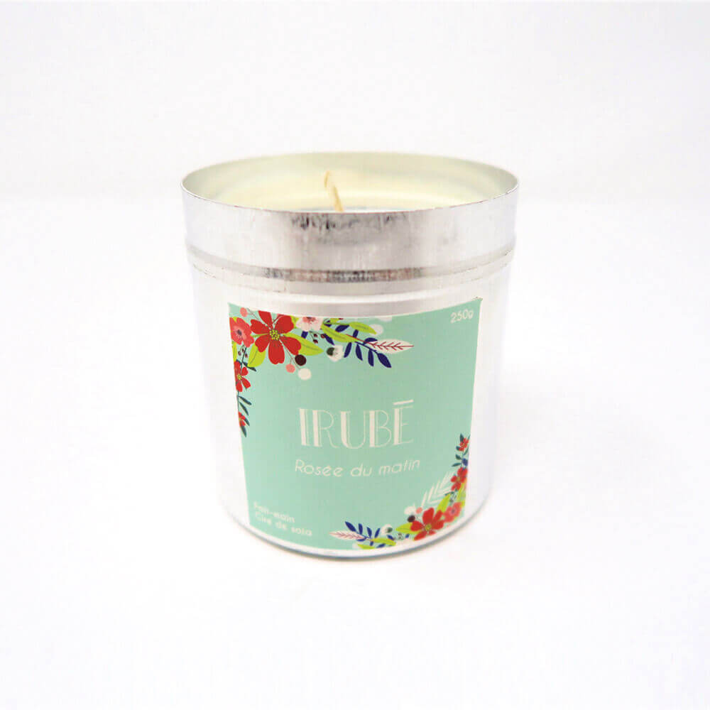 Cette bougie faite-main est élaborée avec de la cire de soja 100% naturelle, non toxique.